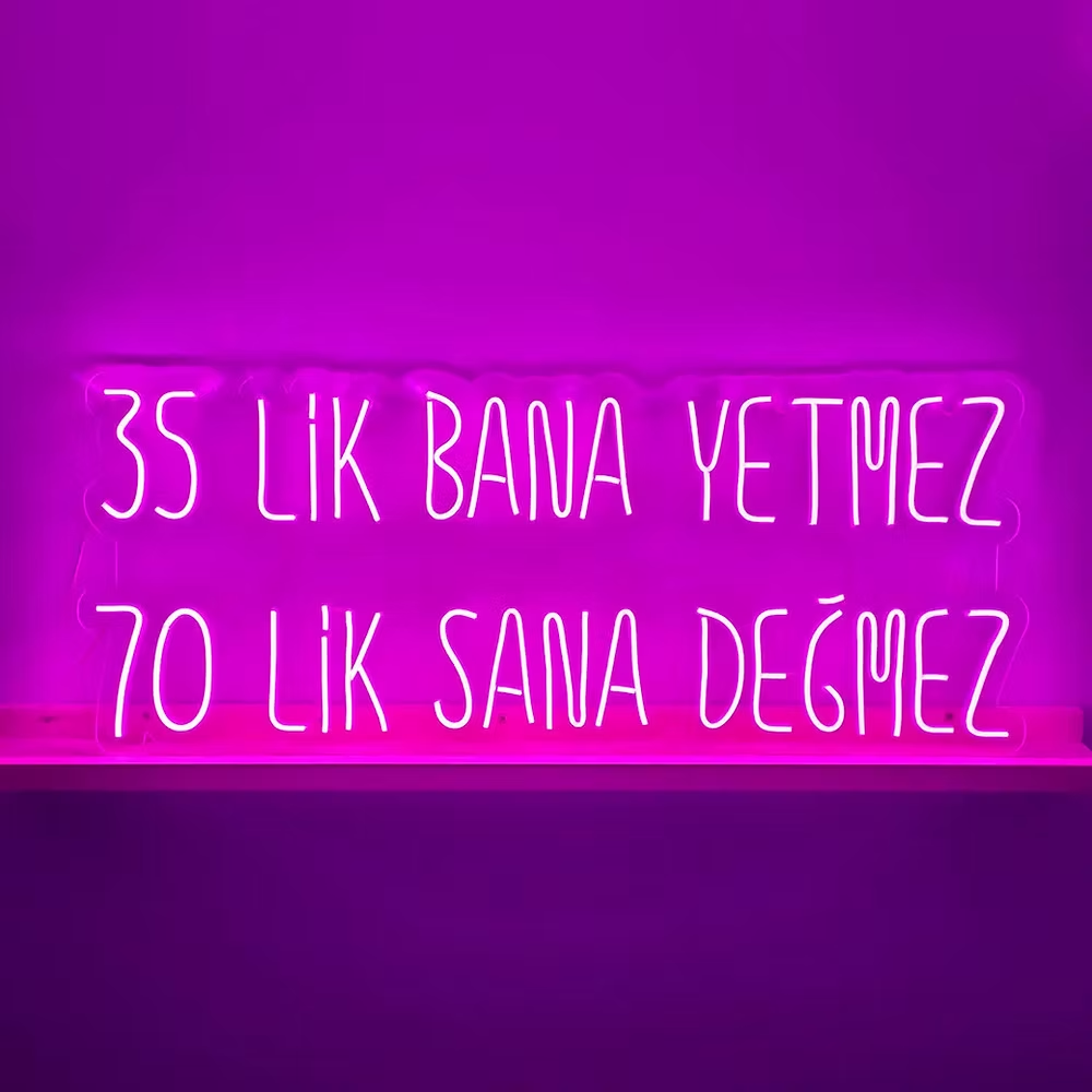 35'lik Bana Yetmez 70'lik Sana Değmez Neon Yazılı Tabela