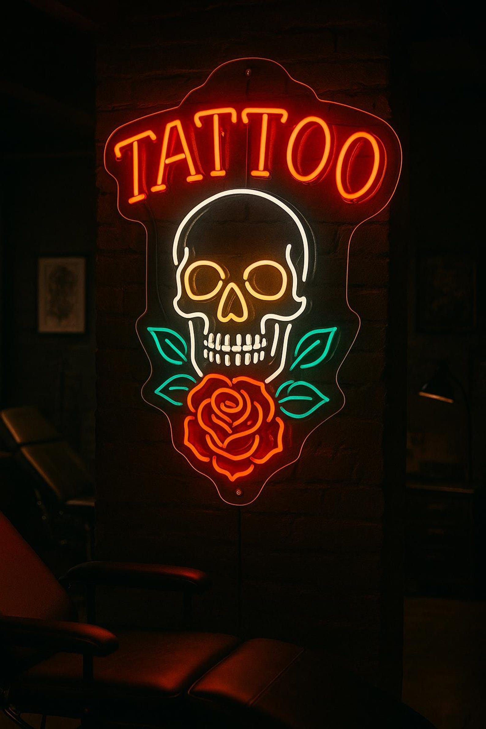 Tattoo Kuru Kafa Neon Yazılı Tabela