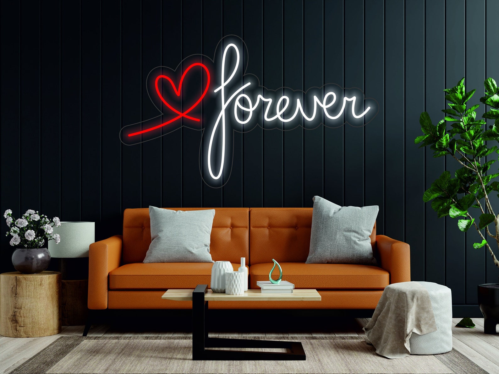 Forever Kalp Neon Yazılı Tabela